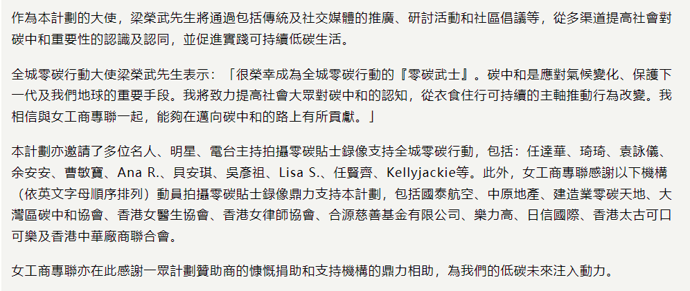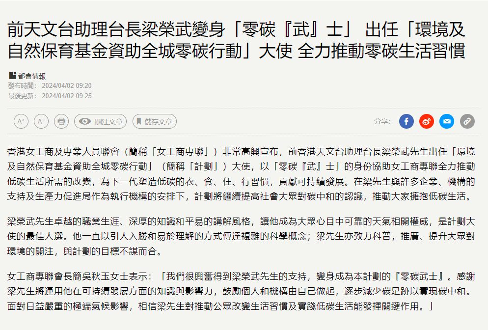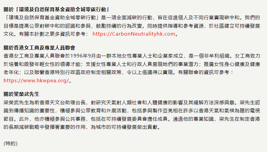 經濟通 (2023/11/24) 極端天氣影響嚴重 減碳生活刻不容緩 環境及自然保育基金資助女工商專聯推出全城零碳行動