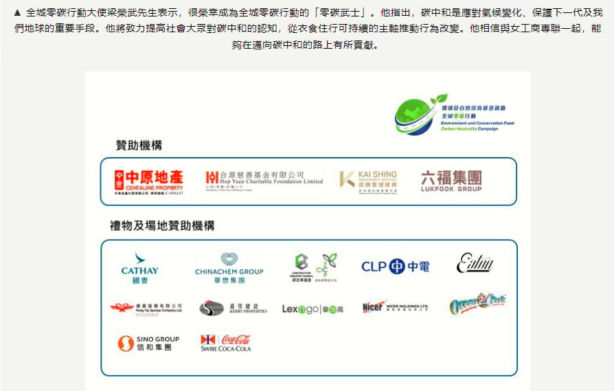 環境及自然保育基金資助全城零碳行動