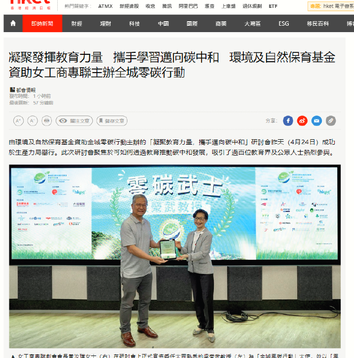香港商報 (2024/04/24) 「全城零碳行動」主辦碳中和研討會 吸引逾百人參加 媒體報導14 5 月, 20243KViews1Like0Comments香港商報 (2024/04/24)Read More