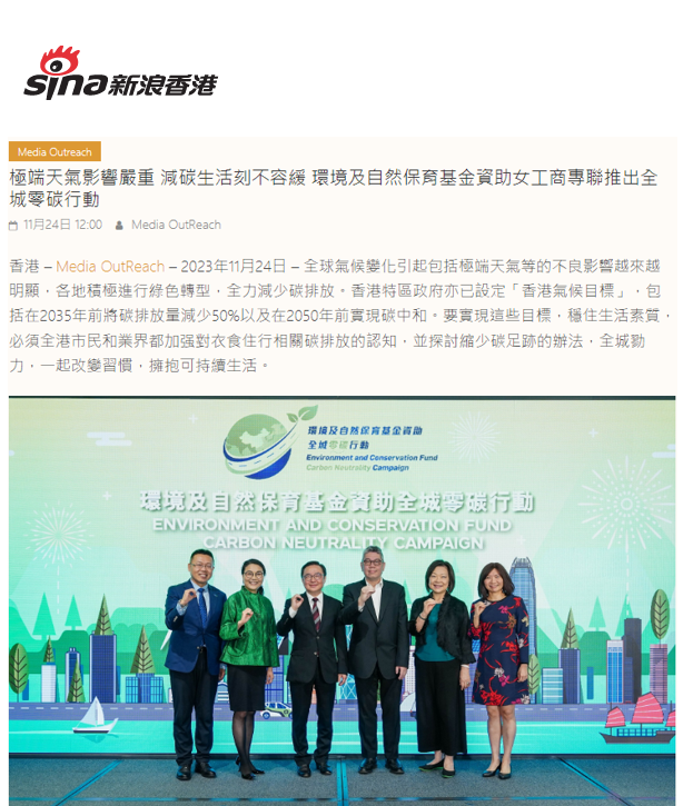 新浪香港 (2023/11/24) 極端天氣影響嚴重 減碳生活刻不容緩 環境及自然保育基金資助女工商專聯推出全城零碳行動 媒體報導29 11 月, 20233KViews1Like0Comments新浪香港 (2023/11/24)Read More