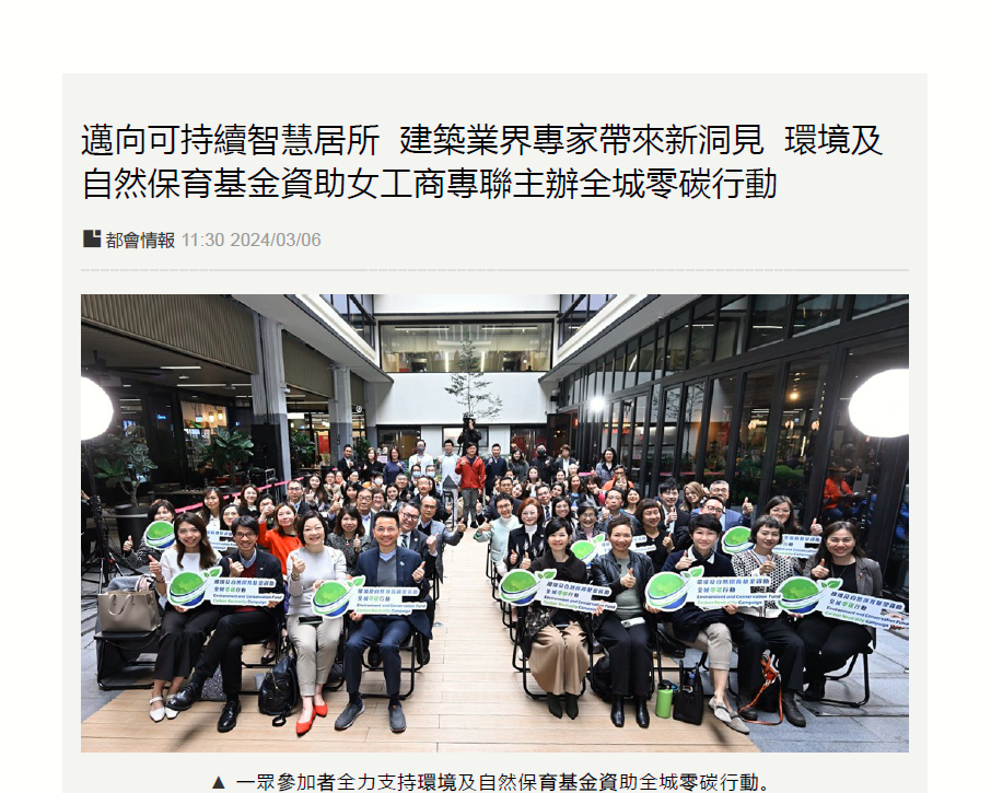 經濟日報 (2024/03/06) 邁向可持續智慧居所 建築業界專家帶來新洞見 環境及自然保育基金資助女工商專聯主辦全城零碳行動 媒體報導6 3 月, 20243KViews1Like0Comments香港經濟日報 (2024/03/06)Read More