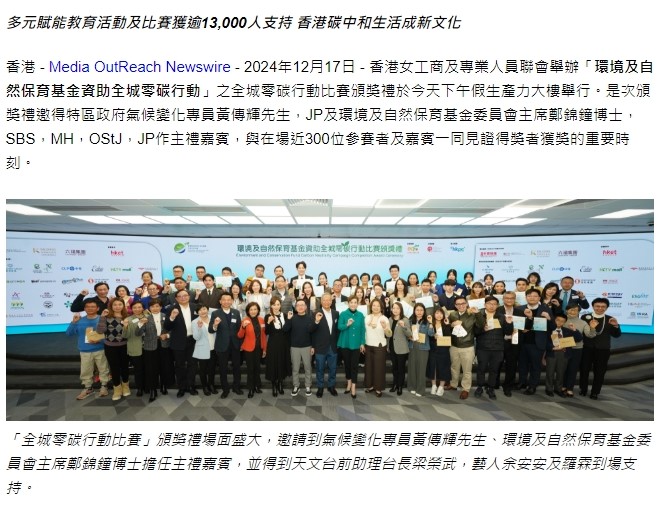 Morningstar Hong Kong (2024/12/18) “衣食住行 Zero Carbon”- 全城零碳行動比賽頒獎禮