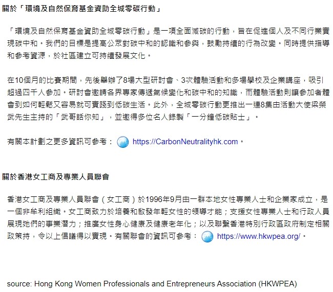 環境及自然保育基金資助全城零碳行動
