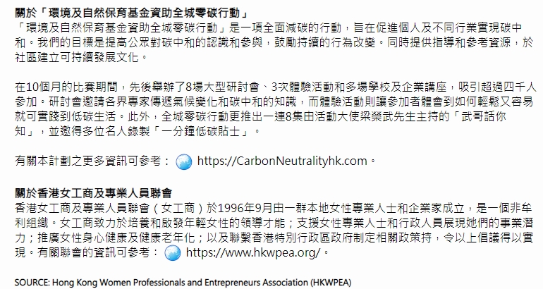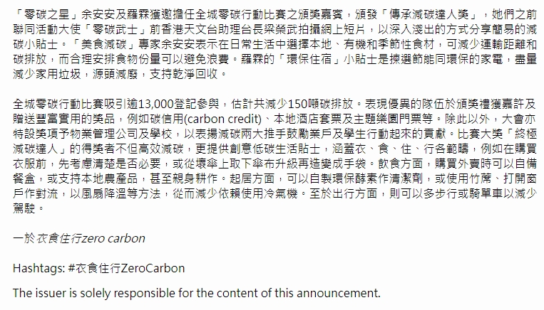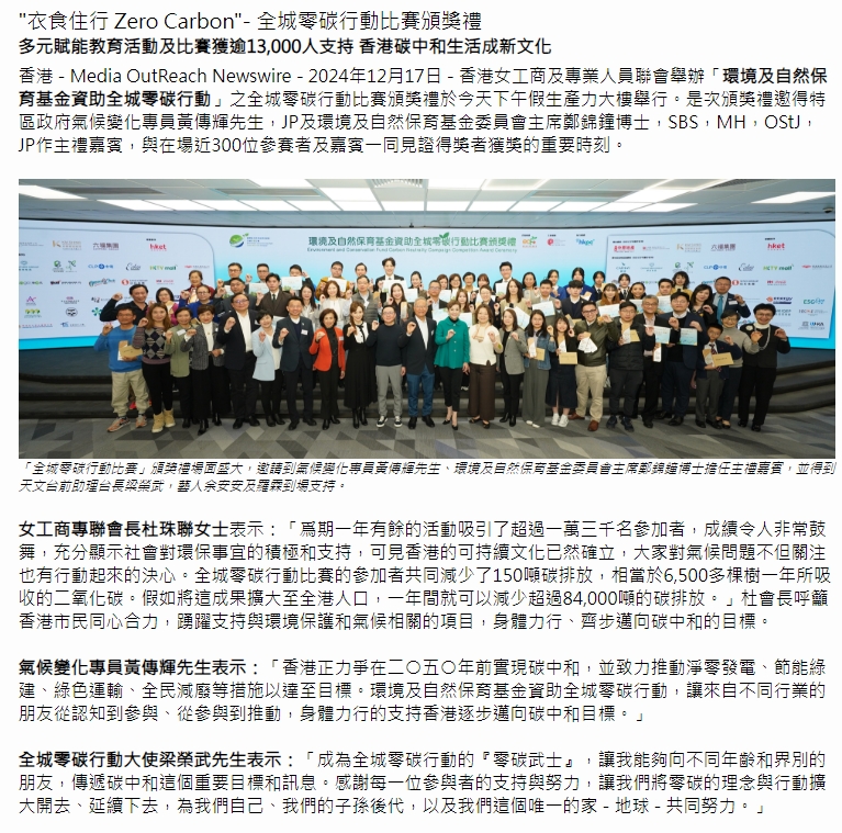 Sina Hong Kong (2024/12/17) “衣食住行 Zero Carbon”- 全城零碳行動比賽頒獎禮