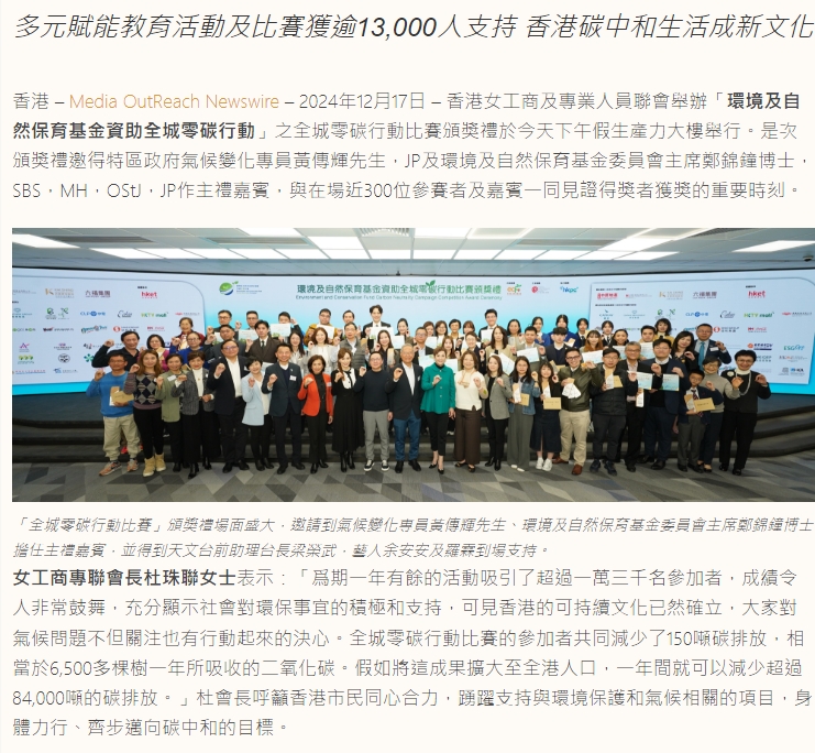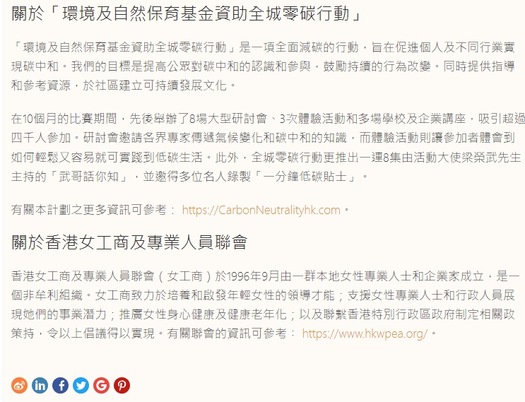香港經濟日報(2023/11/23)極端天氣影響嚴重 減碳生活刻不容緩 環境及自然保育基金資助女工商專聯推出全城零碳行動