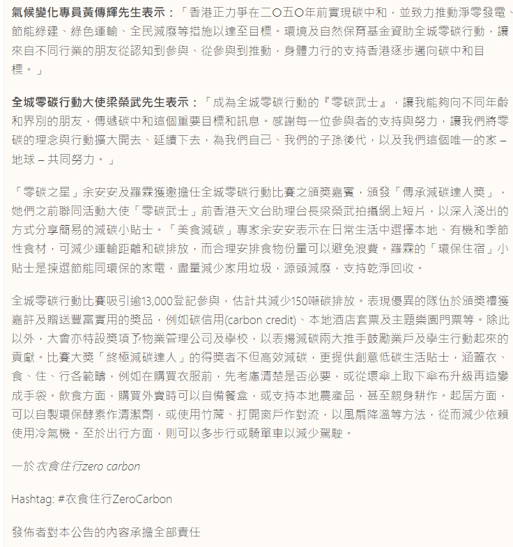 ETNet (2024/12/17) “衣食住行 Zero Carbon”- 全城零碳行動比賽頒獎禮